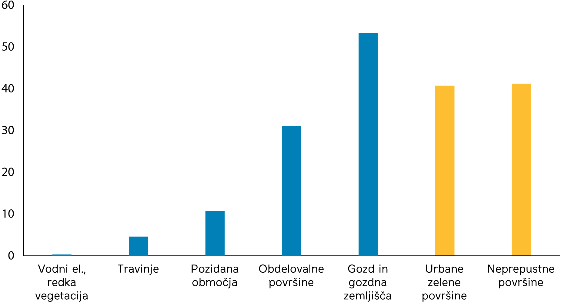 Slika 1: Deleži rabe tal in zelenih površin v Mestni občini Kranj.